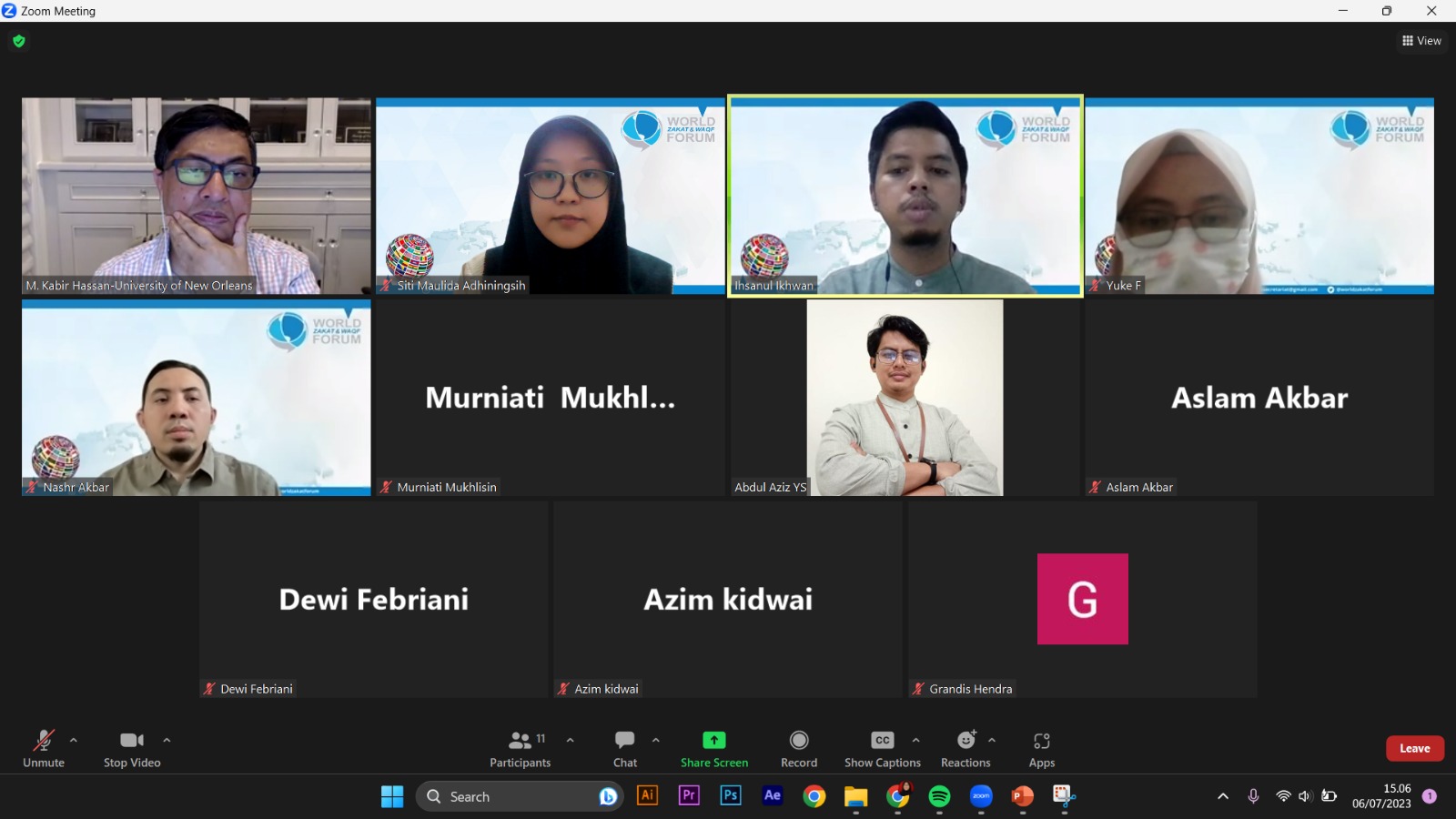 Thursday, 07 July 2023, ZAWOUNI Team from BAZNAS RI, World Zakat and Waqf Forum, and IAI TAZKIA invited the appointment Lecturers to attend the Online Technical Meeting. The purpose of this Agenda was to explain the implementation of the ZAWOUNI Synchronous Class Mechanism from July to October 2023. It includes schedules, class mechanisms (teaching materials & exams), assessment systems, and academic provisions related to completing the basic-level curriculum.