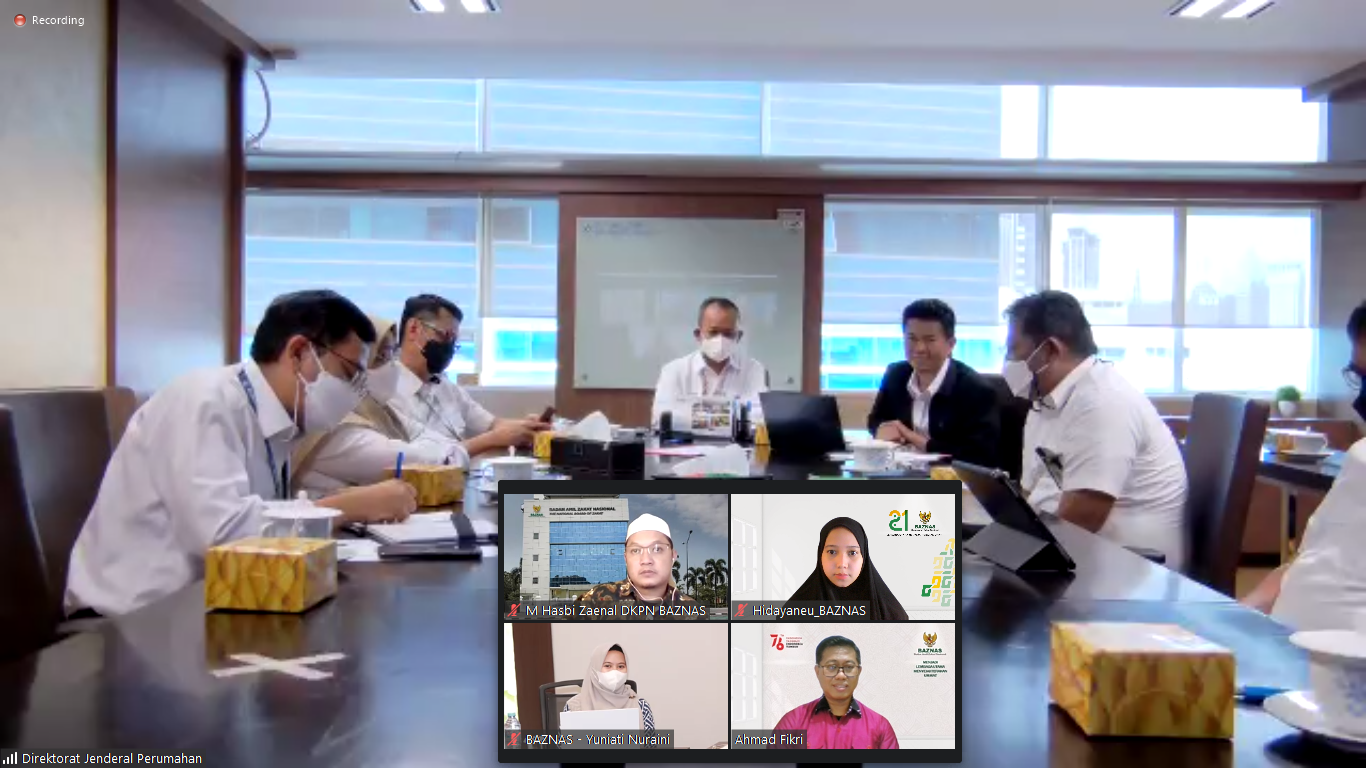 On Thursday (27/1), BAZNAS attended a virtual meeting with the Ministry of Public Works and Public Housing (Kemen PUPR). This meeting was attended by the Director General of Housings, Iwan Suprijanto, ST, MT and his colleagues along with the Acting Director of Research and Development of BAZNAS, Dr. Muhammad Hasbi Zaenal and the Director of Distribution, Bapak Ahmad Fikri and several other participants from BAZNAS. The meeting discussed the progress on the Memorandum of Understanding for the BAZNAS and Kemen PUPR partnership and the potential programs that will be realized in the near future once the MoU has been signed.
