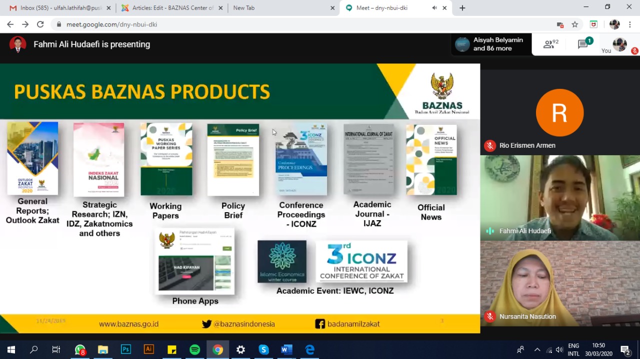 On Monday 30/03, the publication and networking division of Puskas BAZNAS conducted an online discussion on contemporary zakat strategic research to SEBI Student.