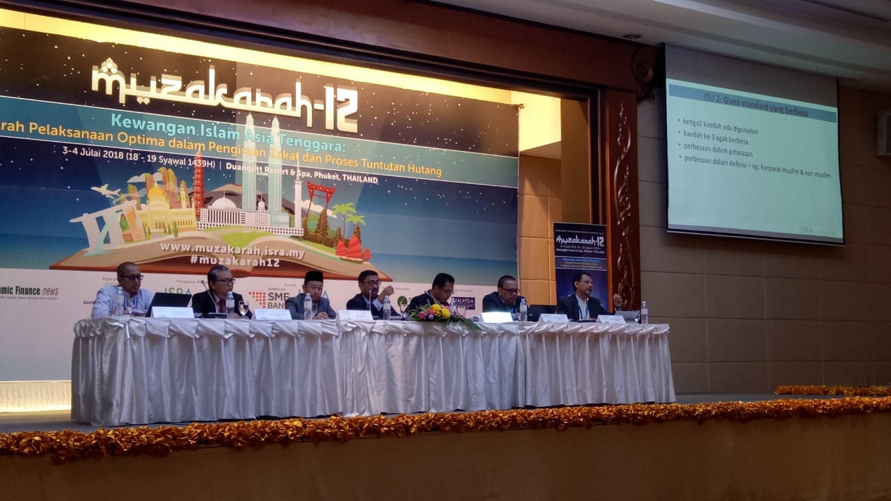 ISRA (Islamic Shariah Research Academy for Islamic Finance), which was established by Bank Negara Malaysia held the 12th Muzakarah Kewangan Islam Asia Tenggara in Phuket Thailand on 3-4 July 2018. In this muzakarah, Puskas BAZNAS Director Dr Irfan Syauqi Beik was invited to share Indonesia's experience in managing zakat of corporation, especially zakat of Islamic financial institution. From Indonesia, Dr Oni Sahroni of the DSN MUI and Cecep Maskanul Hakim of the Bank Indonesia were also among invited speakers. This muzakarah was attended by representatives from various ASEAN member countries comprising bankers, regulators, academicians, and zakat practioners. Prof Akram Laldin, Dr Ismail Luthfi of Fatoni University and Mr Adnin Pakbara (Thailand Deputy Minister at Prime Minister Office) were among prominent figures attending the event.