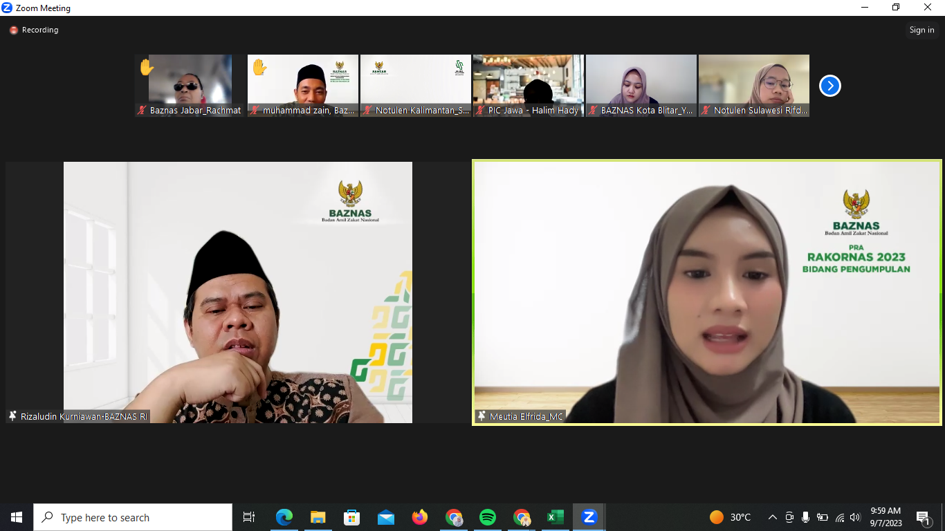 August 15, 2023 - Mr. Noor Achmad, Chairman of BAZNAS, opened the pre-meeting for the BAZNAS National Coordination Meeting (Rakornas) with great enthusiasm via a Zoom meeting. The purpose of this meeting is to prepare for the upcoming Rakornas BAZNAS, scheduled for next week, and to conduct socialization and confirm targets for next year's zakat collection.